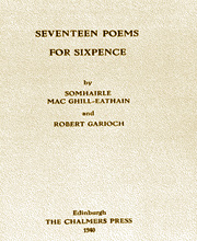 Somhairle MacGill-Eain agus Robert Garioch. Seventeen Poems for Sixpence. Dùn Èideann: Clò Chalmers, 1940. |
